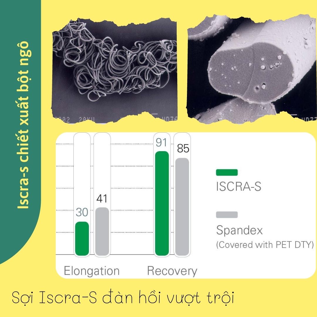 Iscra - sợi sinh học được chiết xuất từ ngô, thân thiện với môi trường, theo xu hướng thời trang bền vững. Đây chính là sự kết hợp của sợi cotton compact và sợi iscra thế hệ mới. Một chiếc áo thun trẻ em phải luôn đảm bảo được sự co giãn và đàn hồi, sản phẩm được làm từ chất liệu iscra hoàn toàn thu hút những phụ huynh đang đi tìm sản phẩm phù hợp với các bé yêu nhà mình.
