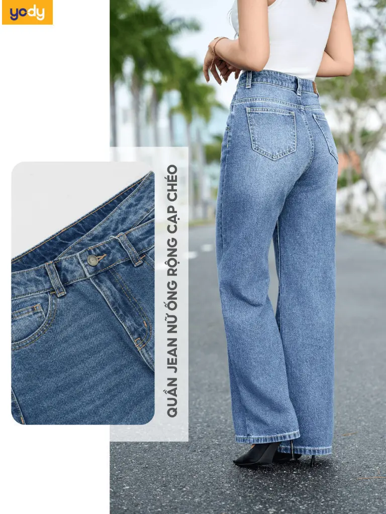 - Thiết kế chuẩn dáng, dễ mặc: Quần jean YODY được nghiên cứu kỹ lưỡng để phù hợp với vóc dáng phụ nữ Việt, giúp che khuyết điểm và tôn dáng hiệu quả.