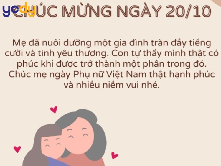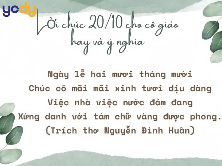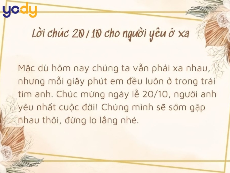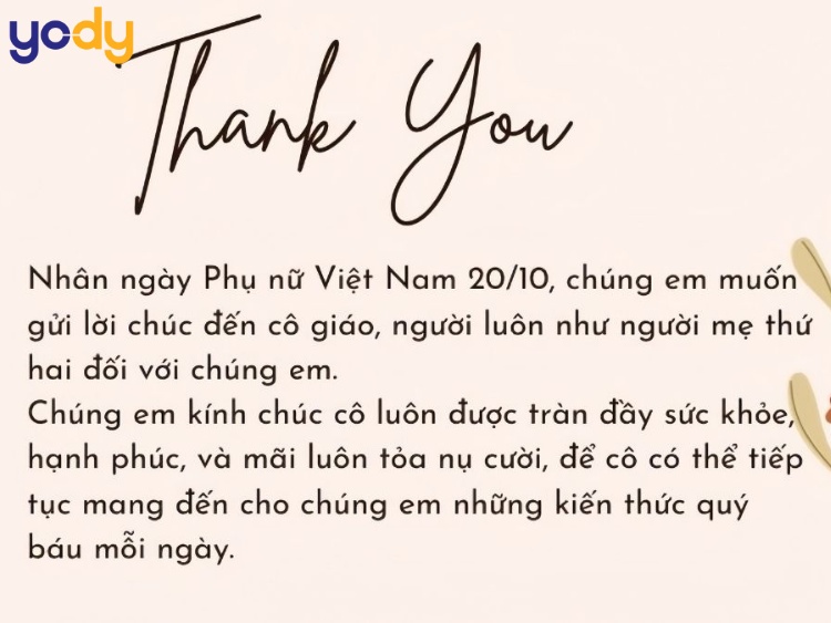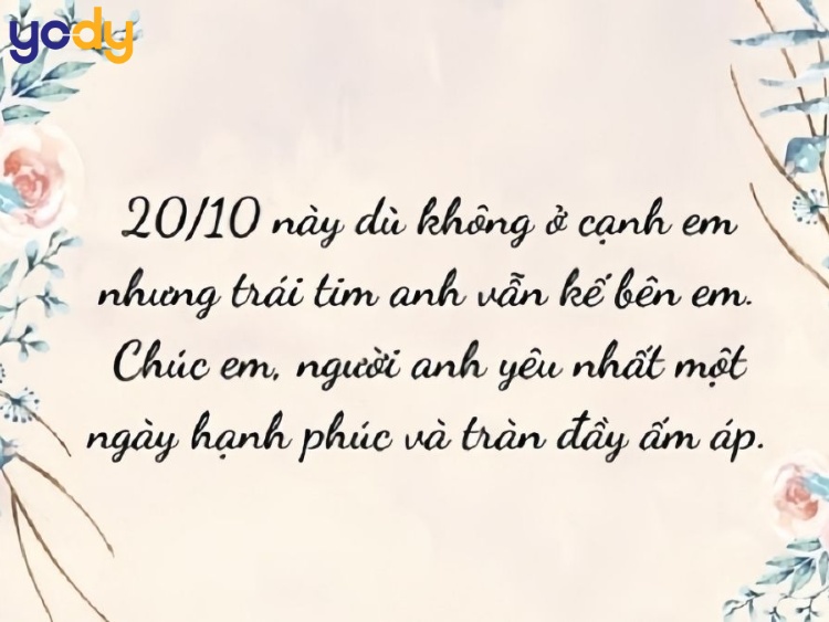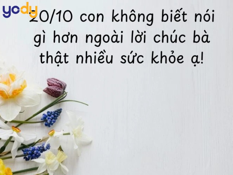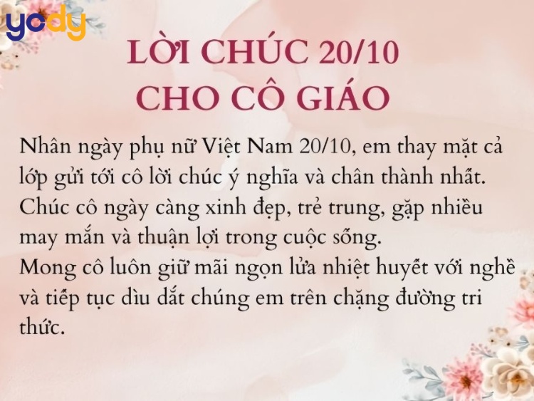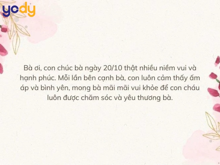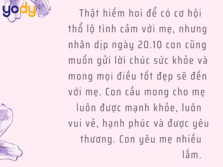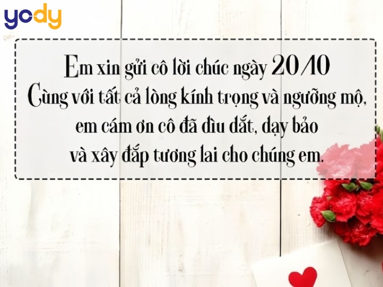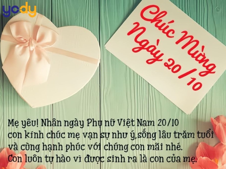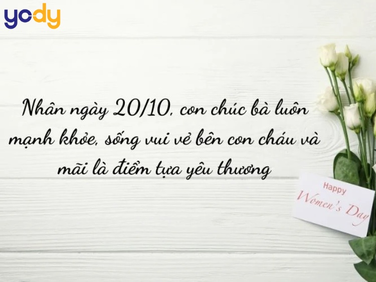Ảnh chúc 20/10 đẹp và ý nghĩa là một cách tuyệt vời để bạn thể hiện sự tri ân và tình cảm sâu sắc đến những người phụ nữ quan trọng trong cuộc đời mình nhân dịp Ngày Phụ nữ Việt Nam. Bài viết này của YODY sẽ tổng hợp những hình ảnh chúc mừng ngày 20/10 đa dạng về phong cách, từ nhẹ nhàng tinh tế đến rực rỡ vui tươi, giúp bạn dễ dàng lựa chọn và gửi gắm những thông điệp yêu thương ý nghĩa nhất.
