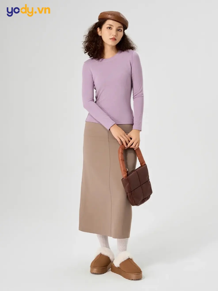 Áo giữ nhiệt, chân váy bút chì: Combo thanh lịch, nhẹ nhàng, rất được lòng các quý cô công sở muốn giữ nét nữ tính và chuyên nghiệp.