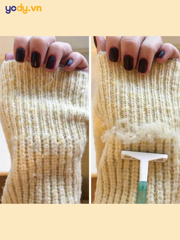 Khi chiếc áo len yêu thích xuất hiện những đám xù lông kém thẩm mỹ, bạn hoàn toàn có thể “hồi sinh” nó ngay tại nhà với cách đơn giản sau. Hãy trải áo trên một mặt phẳng thật phẳng phiu, sau đó dùng dao cạo râu hoặc dao lam lướt nhẹ theo chiều dệt từ trên xuống dưới. Động tác cần chậm rãi, đều tay để loại bỏ các sợi xơ mà không làm hỏng bề mặt len.