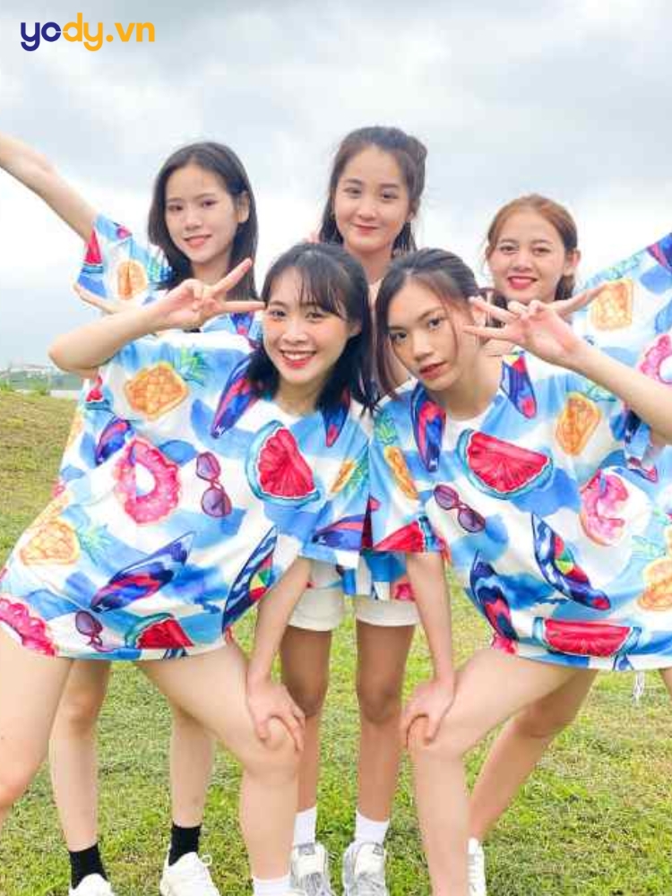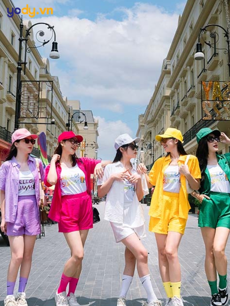 Các bạn nữ có nhiều lựa chọn hơn để thỏa sức sáng tạo và thể hiện gu thời trang của mình. Áo nhóm có thể dễ dàng mix-match cùng quần short trẻ trung, chân váy ngắn điệu đà, hoặc cả những chiếc quần ống rộng culottes thời thượng, mang lại sự thoải mái tối đa khi di chuyển và vui chơi. Để set đồ thêm phần hoàn hảo, đừng bỏ qua những phụ kiện của mùa hè như dép sandal xinh xắn, mũ rộng vành duyên dáng giúp che nắng và tạo dáng, cùng một cặp kính râm sành điệu bảo vệ mắt và tăng thêm vẻ cuốn hút.
