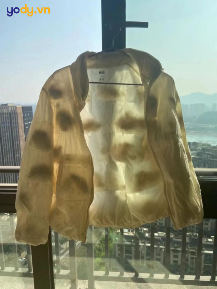 Mùi hôi thường xuất phát từ lông vũ tự nhiên hoặc nấm mốc hình thành khi áo còn ẩm ở lõi bông. Trong trường hợp này, bạn cần tiếp tục sấy ở chế độ gió hoặc phơi áo tại nơi thật thoáng, kết hợp giũ và vỗ nhẹ để không khí lưu thông sâu vào bên trong cho đến khi áo khô tuyệt đối.