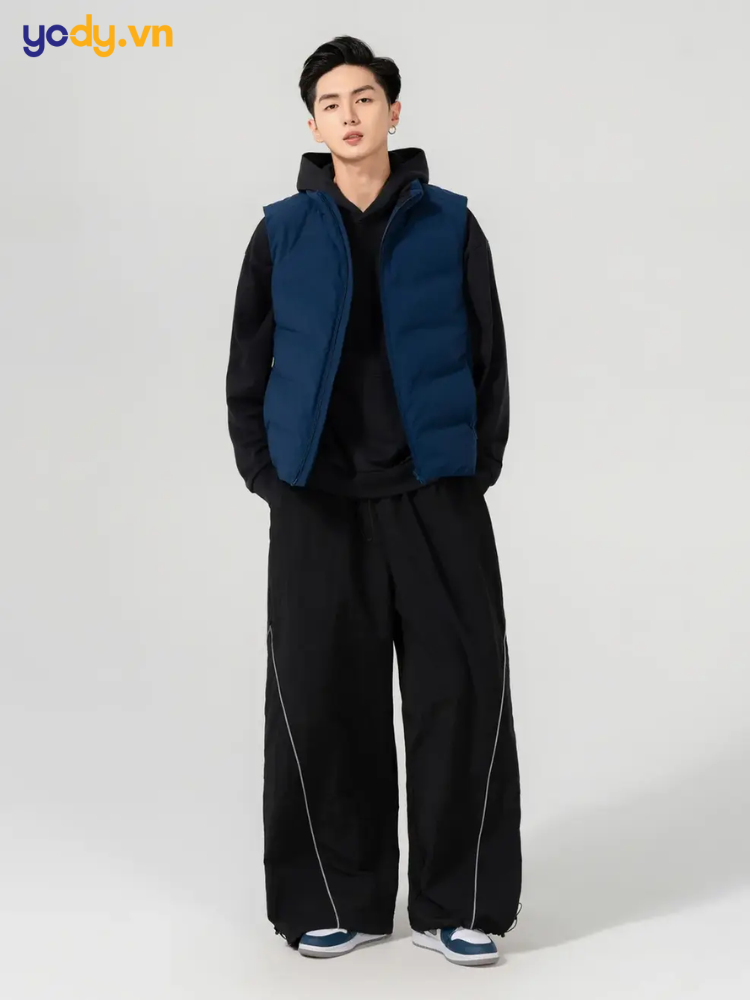 Mẹo chọn màu: Áo phao trung tính (đen, xanh navy, xám) dễ phối với hoodie hoặc áo nỉ màu sáng, tạo sự cân bằng.