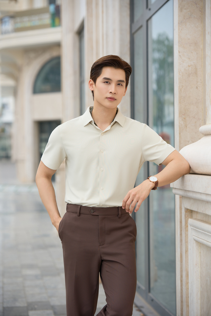- Đi làm: Áo polo slim fit màu trung tính (trắng, navy, xám) + quần âu + giày loafers/Oxford.