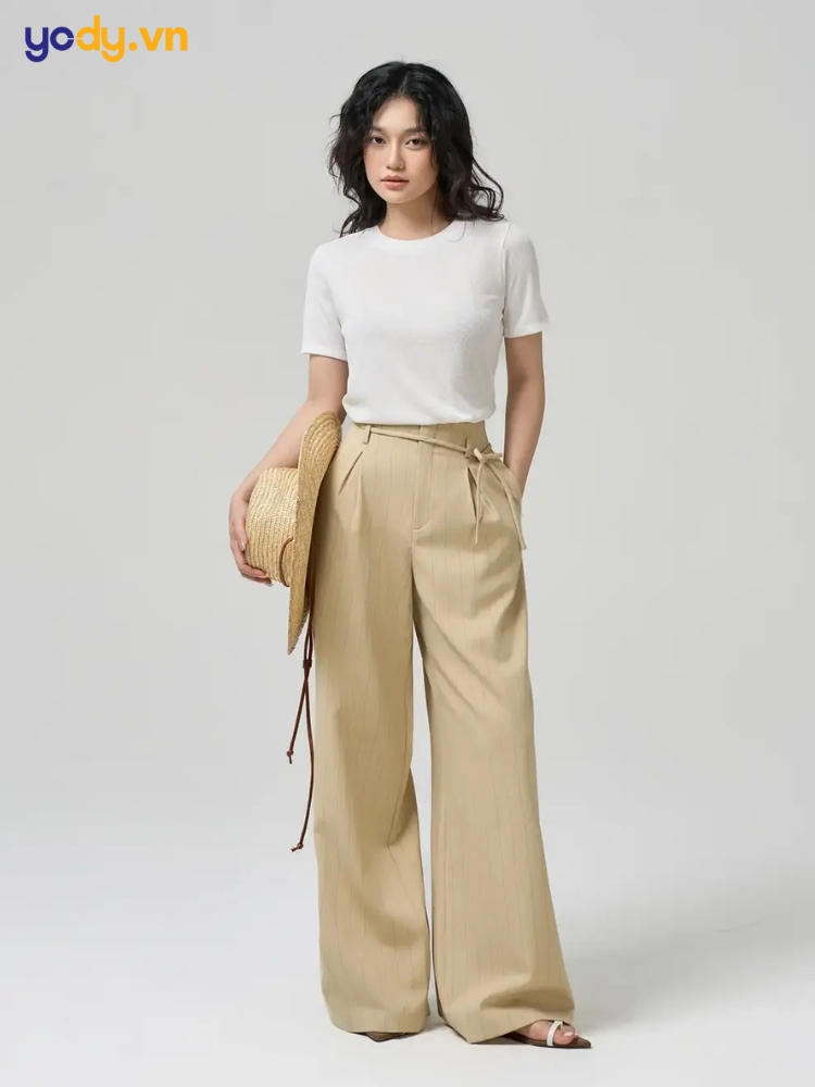 Áo thun trắng + quần ống rộng | Thoải mái, tối giản | Che khuyết điểm tốt, phù hợp mọi dáng người, dễ phối phụ kiện | Những ngày "bí ý tưởng", cần gọn nhẹ |