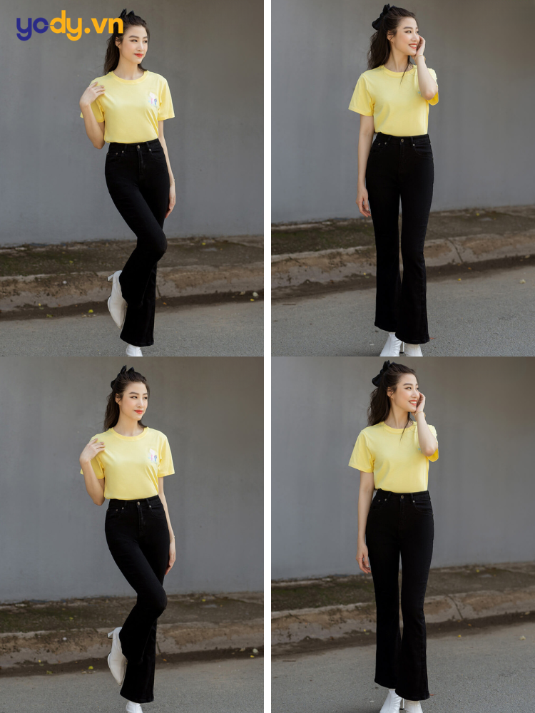 2.1 Áo thun vàng mix quần jeans đen/skinny đen