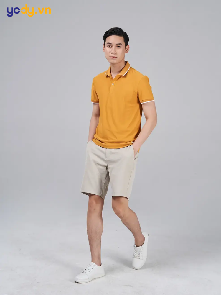 Nếu muốn xây dựng hình ảnh chàng trai tinh tế và tràn đầy năng lượng, hãy thử kết hợp áo thun vàng với quần trắng. Sự kết hợp này mang đến diện mạo tươi sáng, sạch sẽ và cực kỳ nổi bật. Đây là lựa chọn lý tưởng cho những chuyến du lịch, dạo phố hay những buổi gặp gỡ cần sự trẻ trung, lịch thiệp.