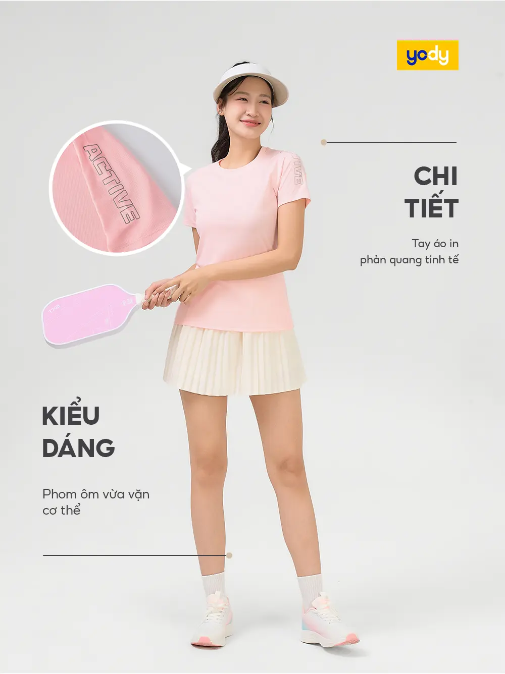 Áo thun thể thao nữ - Basic nhưng không nhàm chán:Một chiếc áo thun thể thao nữ với chất liệu làm mát, chống tia UV sẽ là trợ thủ đắc lực cho những buổi chạy bộ hay tập yoga. YODY đem đến form dáng vừa vặn, không quá ôm sát để máu dễ lưu thông, màu sắc pastel nhẹ nhàng sẽ giúp bạn trông tươi trẻ hơn.