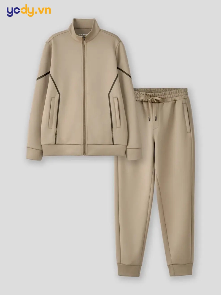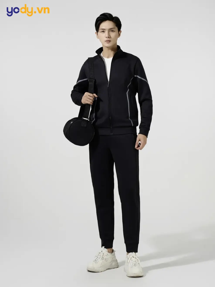 Thiết kế thể thao, tôn dáng tinh gọn: Dáng ôm vừa vặn, tối giản nhưng hiện đại, phù hợp với nhiều vóc dáng khác nhau. Phần tay áo và gấu quần được bo gọn gàng, giúp giữ phom chuẩn, mang lại diện mạo lịch sự mà vẫn năng động.