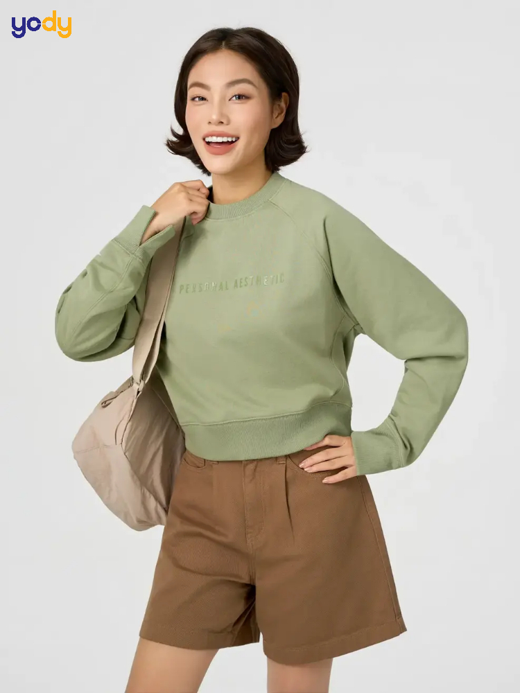 Nên chọn áo cổ tròn có form gọn gàng, không quá dài hoặc quá rộng. Những kiểu áo có chiều dài vừa chạm hông hoặc croptop nhẹ sẽ giúp “ăn gian” chiều cao hiệu quả.