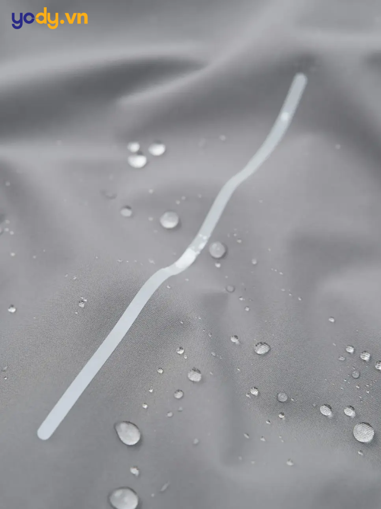 Công nghệ DWR: DWR (Durable Water Repellent) là lớp phủ giúp nước co lại thành hạt tròn và trượt nhanh khỏi bề mặt vải, hạn chế hiện tượng thấm ngược và giữ được độ thoáng khí bên trong áo. Đây là yếu tố quan trọng giúp áo gió khô nhanh, nhẹ áo và bền hiệu năng sau thời gian dài sử dụng.