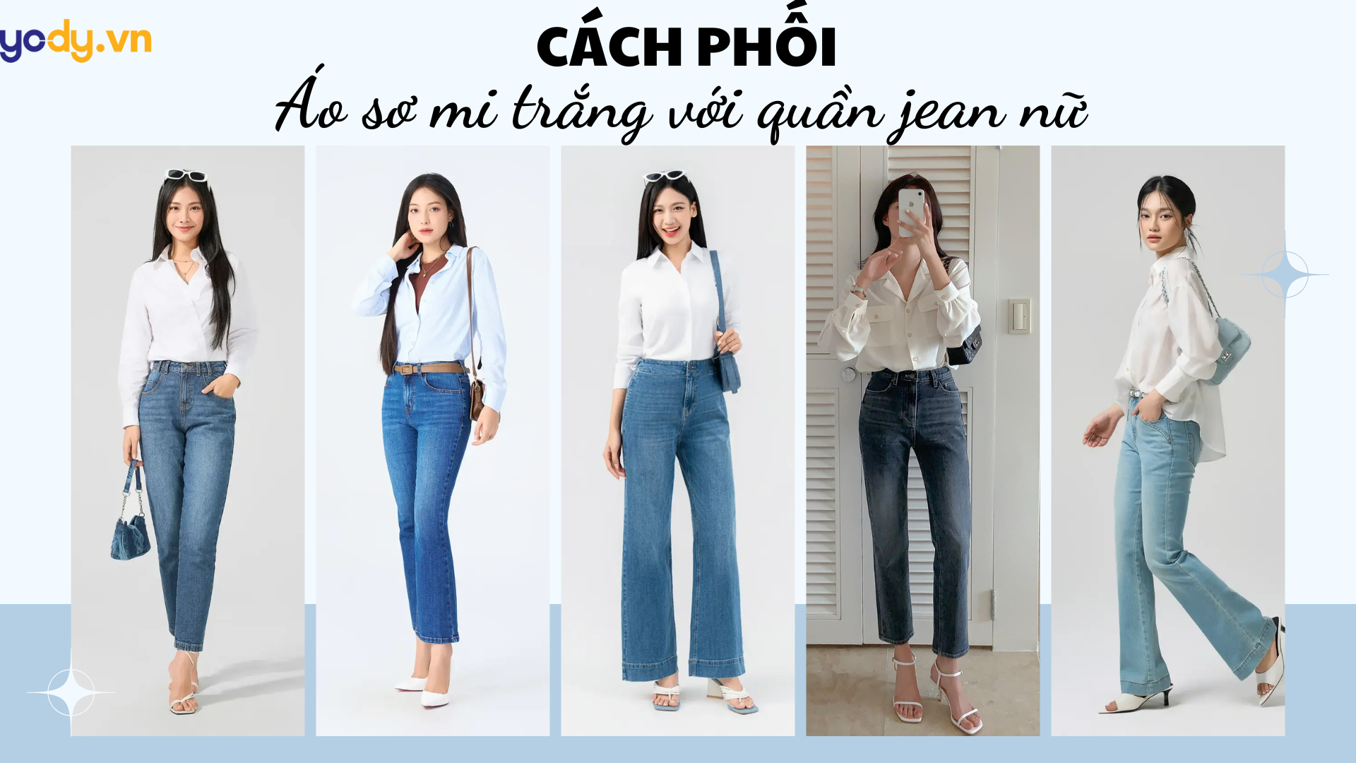 3. Cách phối áo sơ mi trắng với quần jean nữ basic