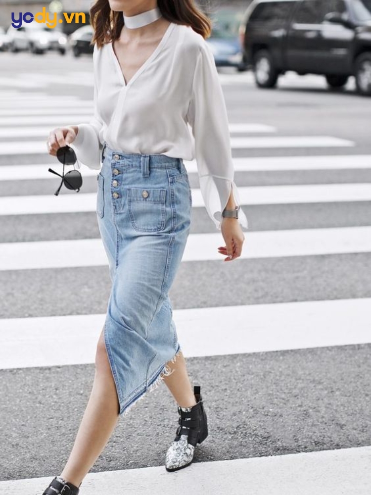 Sự kết hợp giữa áo sơ mi trắng oversize và quần jean mang đến tổng thể phóng khoáng, đậm chất street style. Bạn có thể sơ vin nhẹ phía trước hoặc buộc vạt áo để tạo điểm nhấn cho vòng eo. Chất liệu denim form rộng giúp tạo cảm giác thoải mái, cá tính nhưng vẫn giữ được nét thanh lịch. Phối thêm sneakers, mắt kính và một chiếc túi tote vải sẽ là combo hoàn hảo cho những buổi dạo phố hay du lịch cuối tuần.