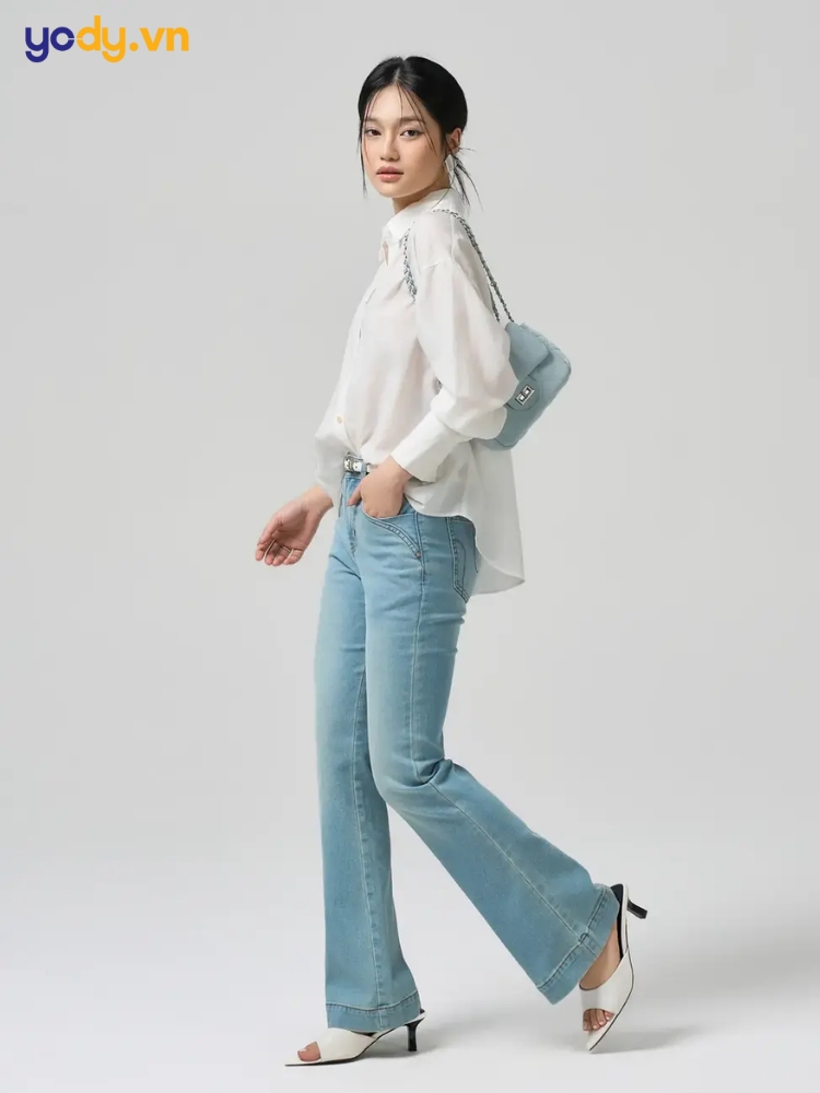 Bên cạnh áo sơ mi, YODY còn có bộ sưu tập quần jean nữ phong phú, từ skinny, baggy đến ống suông, với chất liệu denim co giãn, mang lại sự thoải mái khi mặc. Sản phẩm được thiết kế tỉ mỉ, phù hợp với nhiều dáng người và phong cách khác nhau.