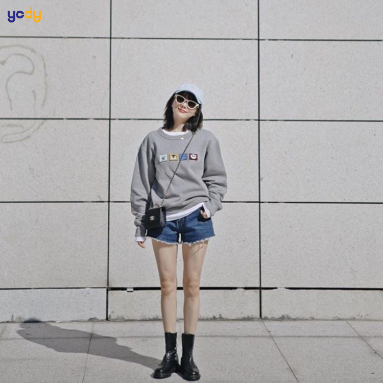 Phong cách “giấu quần” với sweater oversize và quần short là lựa chọn rất được các bạn nữ yêu thích vào những ngày se lạnh đầu thu. Sự kết hợp này vừa mang lại cảm giác trẻ trung, cá tính vừa giúp bạn khoe khéo đôi chân thon. Bạn có thể thêm phụ kiện như mũ beanie, túi đeo chéo nhỏ hoặc giày sneaker chunky để set đồ thêm phần bắt mắt.