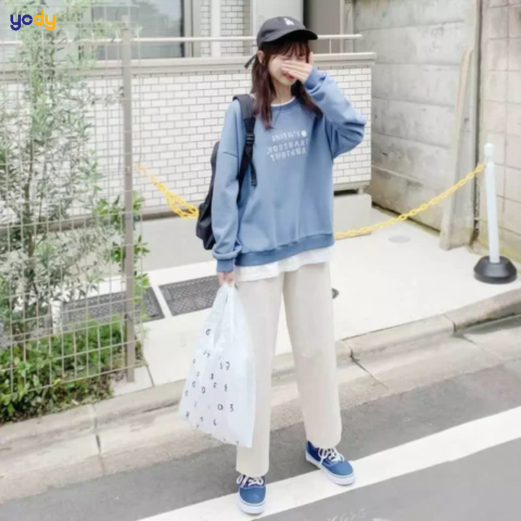 Đây là kiểu phối đồ đơn giản nhưng chưa bao giờ lỗi mốt. Một chiếc áo sweater dáng rộng kết hợp với quần jean ống đứng sẽ mang lại vẻ ngoài năng động, trẻ trung. Bạn có thể chọn các gam màu trung tính như trắng, be hoặc ghi cho sweater để dễ phối với mọi màu quần jean. Hoàn thiện set đồ bằng đôi sneaker trắng và một chiếc túi tote vải sẽ giúp tổng thể trông phóng khoáng, hợp trend.