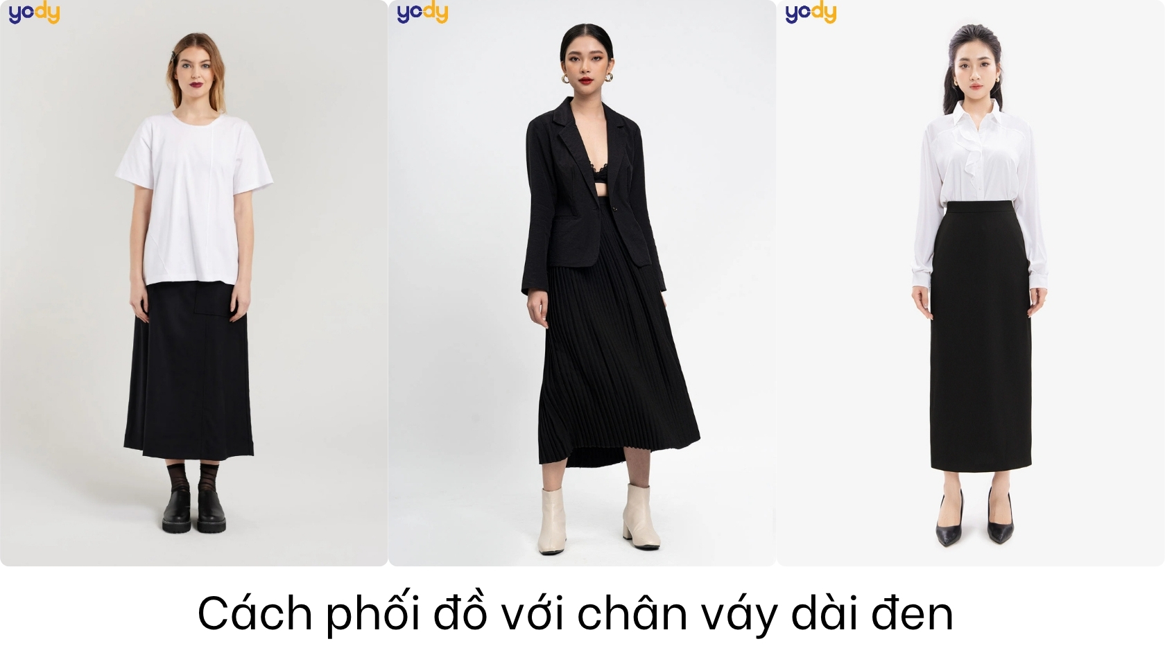 Chân váy dài đen là item thời trang kinh điển, dễ dàng phối hợp với nhiều phong cách khác nhau. Nếu bạn đang tìm kiếm cách phối đồ với chân váy dài đen để luôn nổi bật và cuốn hút, đừng bỏ qua những gợi ý sau đây, giúp bạn tự tin biến hóa phong cách từ dịu dàng, thanh lịch đến cá tính, hiện đại.