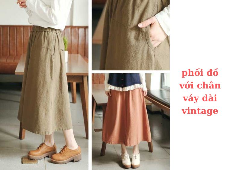 Chân váy maxi vintage: Loại chân váy dài đến mắt cá, thường có kiểu dáng phồng và thoải mái, tạo cảm giác lãng mạn và nữ tính.