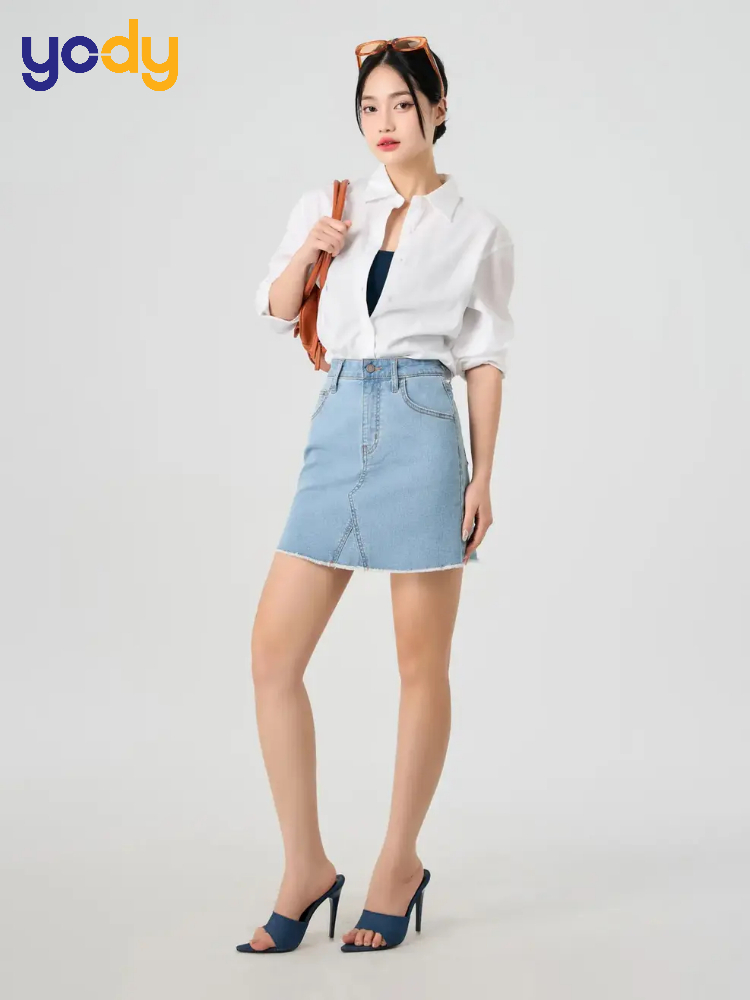 Để tăng thêm phần sành điệu, bạn hãy phối set đồ này với một đôi giày sandal quai mảnh hoặc giày đế xuồng. Nếu bạn có chiều cao khiêm tốn, hãy chọn những chiếc váy jean có cạp cao để đánh lừa thị giác, giúp cơ thể trông cao ráo hơn. Đừng quên thêm một chiếc kính râm thời thượng để biến mình thành một fashionista thực thụ ngay trên đường phố.