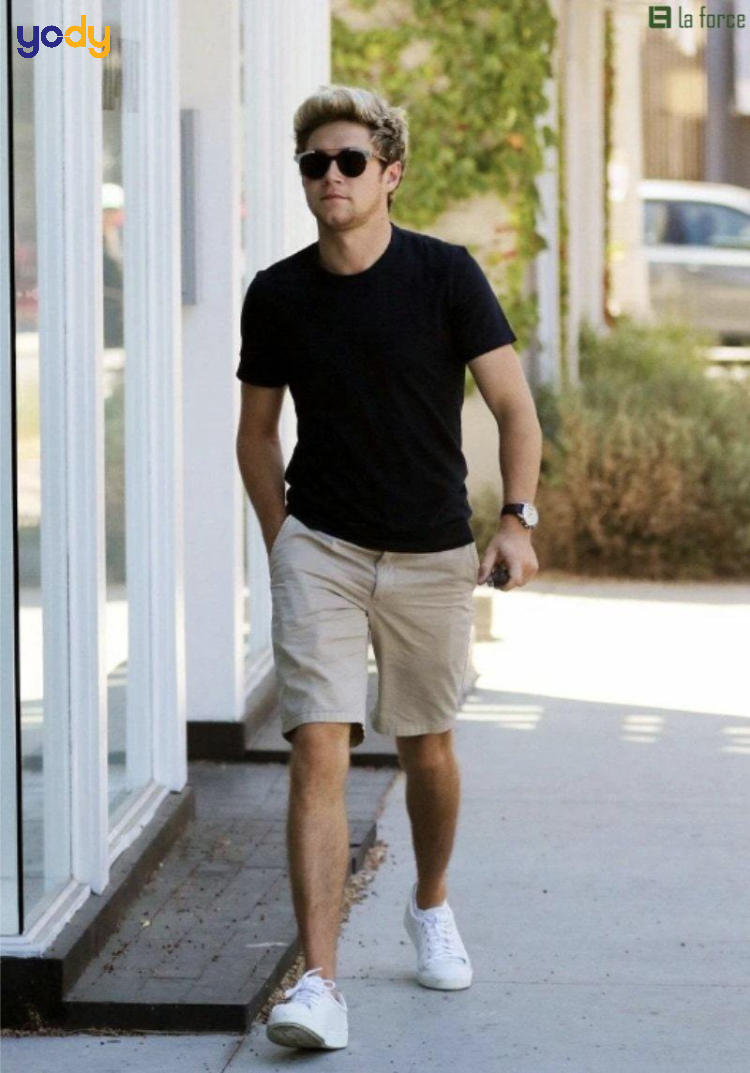 2.2 Áo Thun Đen Với Quần Short Kaki Be