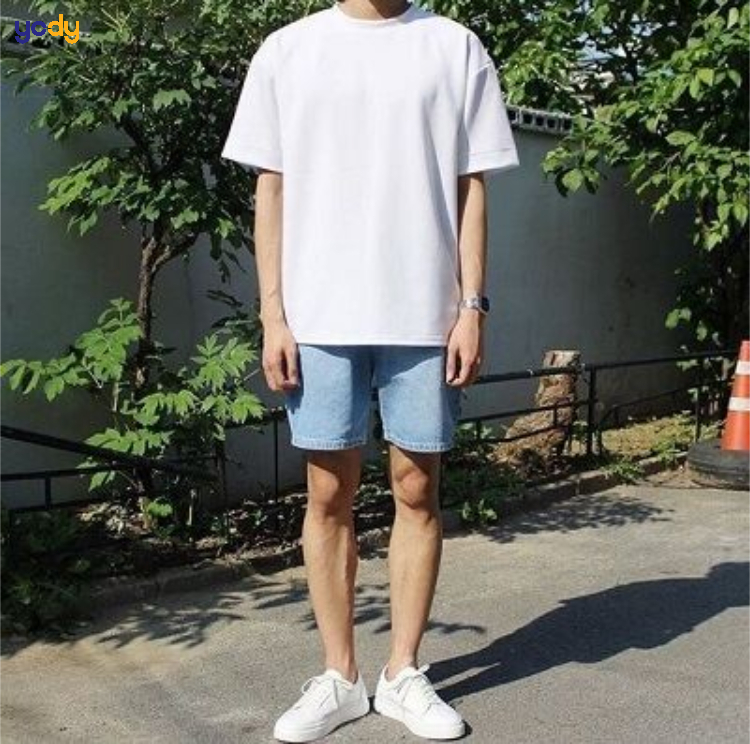 Đây là “combo quốc dân” mà ai mặc cũng đẹp, dù bạn là nam hay nữ, “mũm mĩm” hay “mi nhon”. Áo thun trắng basic khi kết hợp với quần short jeans xanh sẽ mang lại vẻ ngoài vừa trẻ trung, năng động lại vừa cực kỳ dễ thương. Đặc biệt, set đồ này cực kỳ linh hoạt – bạn có thể mặc đi học, đi chơi, đi cà phê hay thậm chí là dạo biển. Thêm đôi sneaker trắng, đeo kính râm và mang theo một chiếc tote bag là auto "cool ngầu" rồi!
