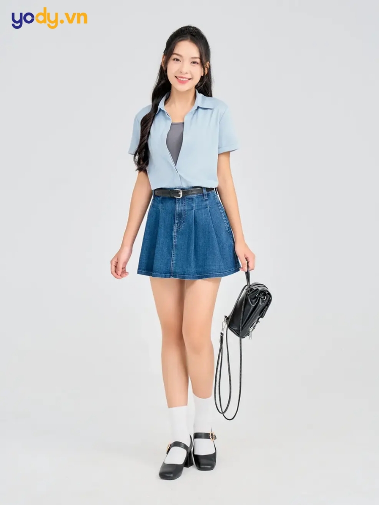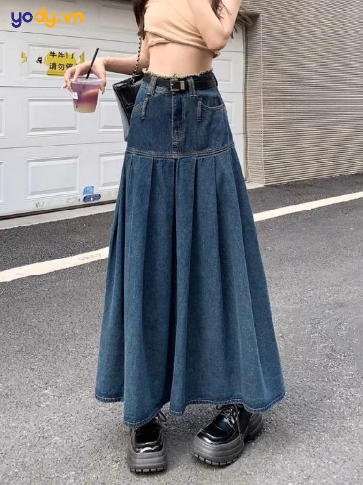 Chân váy xòe & xếp ly: Tôn nét nữ tính nhưng không kém phần cá tính khi được làm từ chất liệu denim. Dáng xòe nhẹ hoặc những đường ly đều giúp tạo điểm nhấn chuyển động, thích hợp với phong cách trẻ trung, dịu dàng.