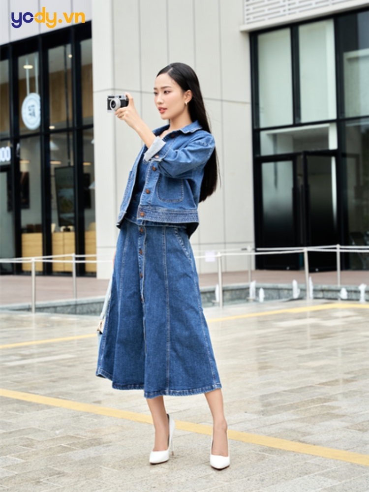 Chân váy jean giữ vững vị thế "trường tồn" trong làng mốt nhờ sự kết hợp hoàn hảo giữa tính ứng dụng cao và phong cách linh hoạt. Chất liệu denim bền bỉ, dễ bảo quản, lại mang nét phóng khoáng đặc trưng khiến món đồ này luôn được lòng phái đẹp qua mọi mùa mốt. Từ dáng chữ A cổ điển đến chân váy midi, xẻ tà hay ôm body, jean dễ dàng bắt nhịp cùng xu hướng mà không đánh mất bản sắc riêng.