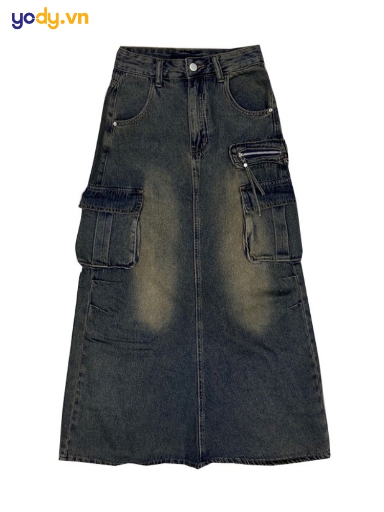 Chân váy dài: Dài chạm mắt cá chân, maxi jean mang đến nét phóng khoáng, lãng mạn và đôi chút nổi bật. Tuy ít phổ biến hơn mini và midi, nhưng maxi jean lại là item độc đáo cho những tín đồ theo đuổi phong cách bohemian hoặc muốn tạo ấn tượng thời trang đậm nét.