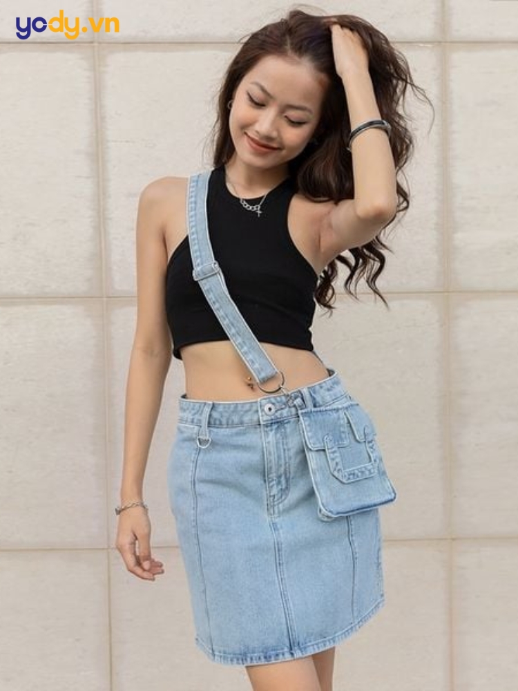 Không gì tuyệt vời hơn sự kết hợp giữa chân váy jean và áo tank top hoặc hai dây. Vừa mát mẻ, thoải mái, vừa khoe được bờ vai trần quyến rũ, đây là set đồ lý tưởng cho những ngày dạo phố hay đi biển.