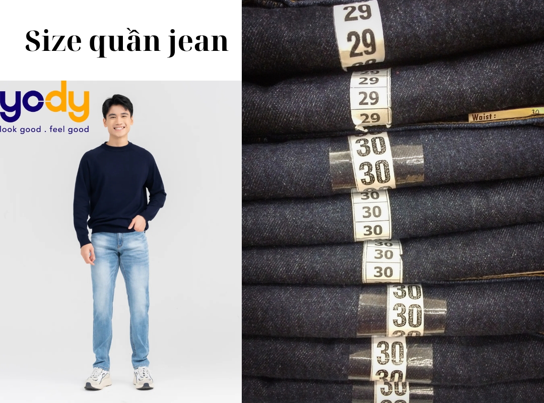 Thông thường, quần jean nam có 6 size cơ bản, từ 28 đến 33, tương ứng với các cỡ S, M, L, XL.