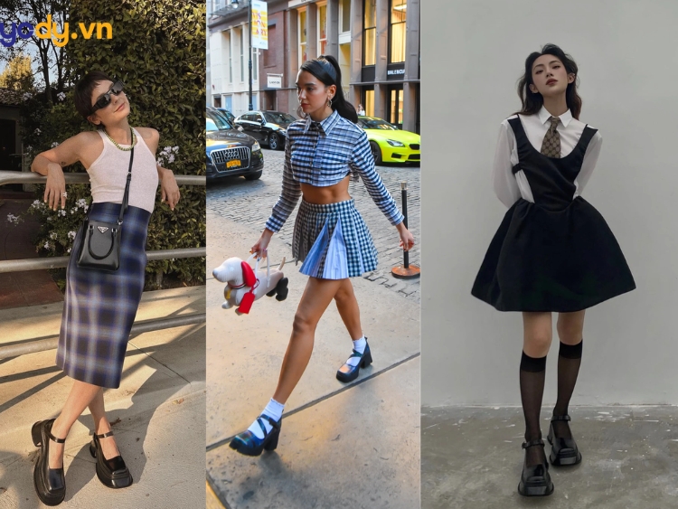Gợi ý phối đồ với giày Mary Jane và chân váy dài qua gối là một lựa chọn đầy quyến rũ và lôi cuốn, đặc biệt phù hợp với những cô nàng yêu thích phong cách vintage cổ điển.