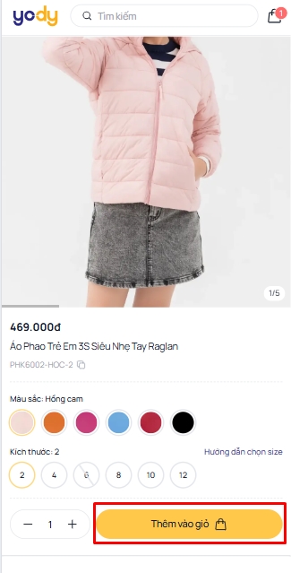 Bước 1: Thêm sản phẩm vào giỏ hàng