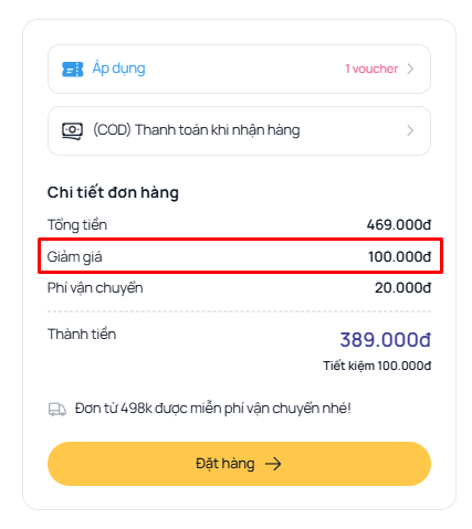 Nếu thông tin số điện thoại và mã voucher khớp nhau, hệ thống sẽ tự động trừ 100.000đ vào tổng số tiền thanh toán của bạn.