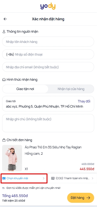 Bước 3: Nhập thông tin và áp dụng mã Voucher