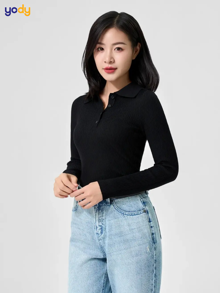 Phần cổ polo đặc trưng với hàng khuy cài phía trước giúp người mặc dễ dàng điều chỉnh độ mở, tạo sự linh hoạt trong phong cách – có thể cài kín để giữ ấm hoặc mở nhẹ để trông thoải mái, trẻ trung hơn. Chất liệu len mềm mại, co giãn vừa phải mang lại cảm giác êm ái khi chạm vào, đồng thời giữ form áo đẹp sau nhiều lần giặt.