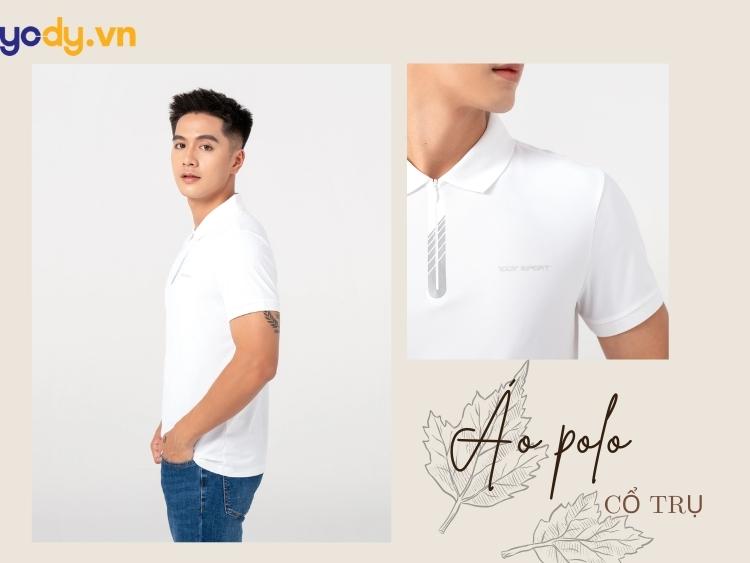 Áo polo nổi bật với cổ áo trụ, thường được thiết kế với nút cài hoặc khóa cài ở phần cổ. Điều này không chỉ tạo nên vẻ ngoại hình lịch lãm mà còn làm cho chiếc áo trở nên độc đáo và dễ nhận diện.