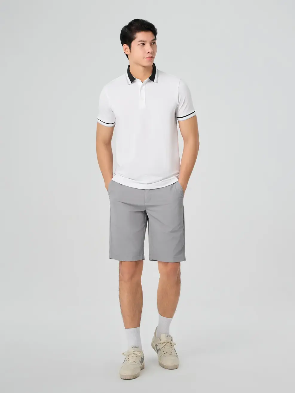 - Áo polo thoáng mát, áo sơ mi ngắn tay, quần short nam, quần kaki ống suông với 4 món này bạn có thể phối hợp được 4 outfit giúp bạn gọn gàng, nam tính và thoải mái suốt buổi tham quan.
