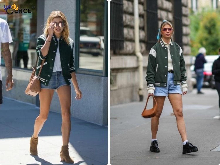 Phong cách này đặc biệt phù hợp với những ngày hè năng động hoặc khi bạn muốn tạo nên một outfit thoải mái, cá tính. Áo bomber dáng oversize phối với quần short cạp cao sẽ làm nổi bật đôi chân và tạo điểm nhấn thị giác ấn tượng. Để tăng thêm phần cool ngầu, hãy chọn thêm túi đeo chéo mini, kính râm và một đôi sneaker hầm hố.