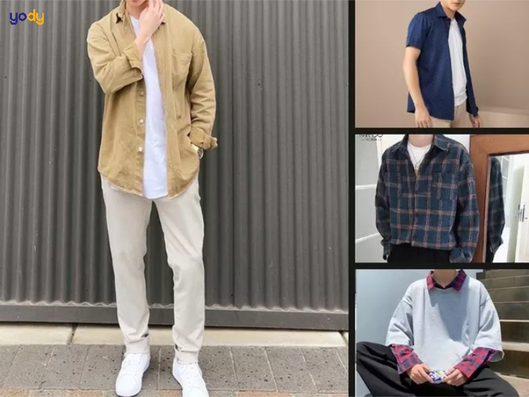 Layer sơ mi bên ngoài áo thun là công thức đơn giản nhưng hiệu quả cao trong việc tạo chiều sâu và cá tính cho outfit. Hãy chọn một chiếc áo sơ mi co giãn dáng suông hoặc hơi oversize để tạo độ thả lỏng, khoác ngoài một chiếc áo thun trắng basic để trung hòa màu sắc. Phối cùng quần jean, quần cargo hoặc chinos đều hợp, giúp bạn dễ dàng áp dụng cho các buổi đi chơi, dạo phố hoặc du lịch.