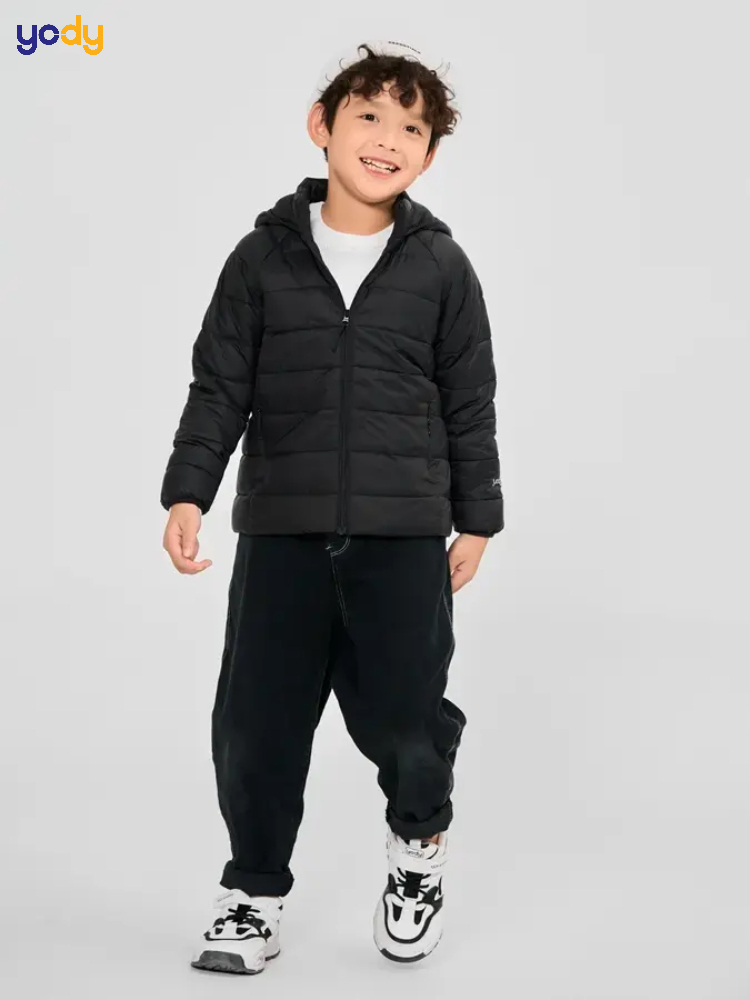 Hoodie trơn tạo cảm giác trẻ trung và khỏe khoắn cho bé, đặc biệt khi mix cùng áo phao dày dặn. Đây là combo rất phổ biến nhờ vẻ ngoài “street style” nhẹ nhàng mà vẫn đủ ấm cho mùa đông.
