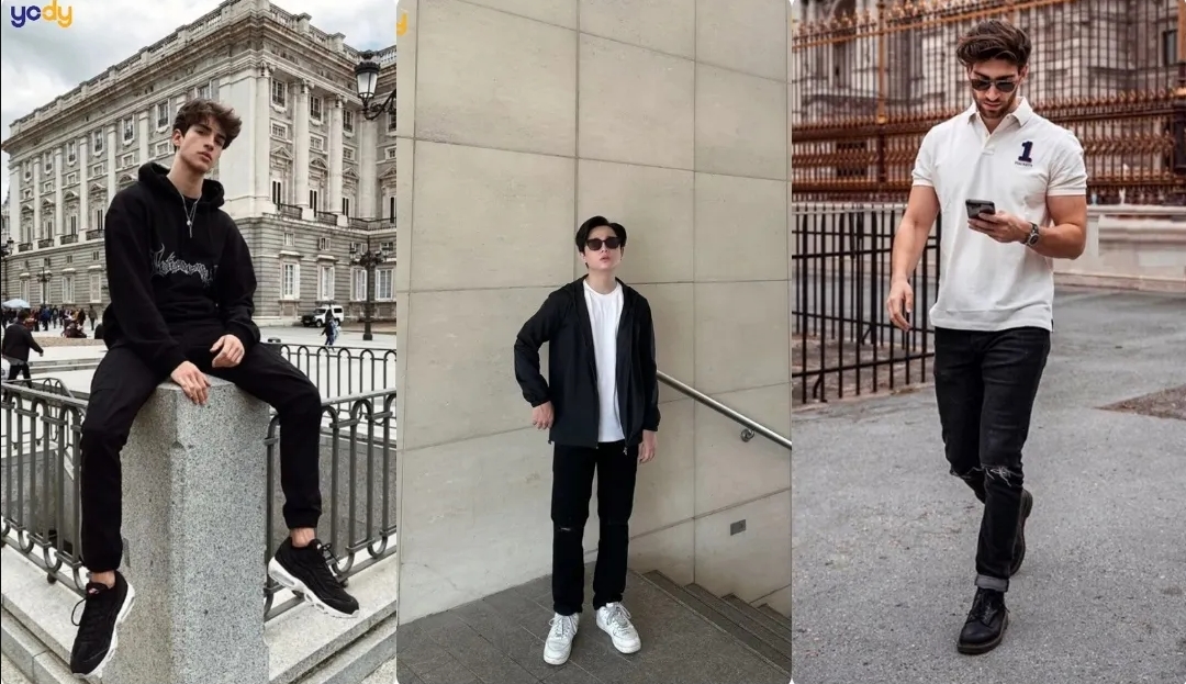 - Đi chơi: Quần jean đen rách gối + áo thun in hình/áo hoodie + giày sneaker . Kết hợp thêm mũ lưỡi trai, túi đeo chéo và kính mát để tạo vẻ ngoài năng động, trẻ trung.