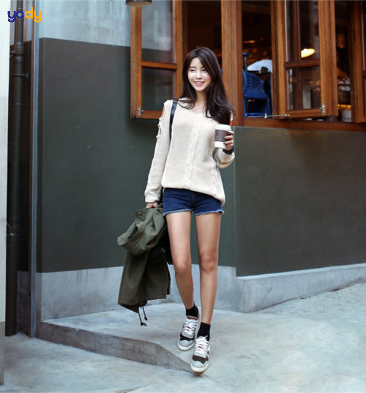Áo len mỏng là item không thể thiếu trong tiết trời chuyển mùa. Khi kết hợp với quần lửng, nhất là các mẫu quần màu trung tính như be, kem, nâu nhạt…, bạn sẽ có ngay một set đồ vừa ấm áp vừa nữ tính. Đặc biệt, kiểu phối này rất phù hợp cho những cô nàng theo đuổi phong cách Hàn Quốc nhẹ nhàng. Đừng quên chọn giày sneaker trắng hoặc giày búp bê để tăng phần tinh tế.