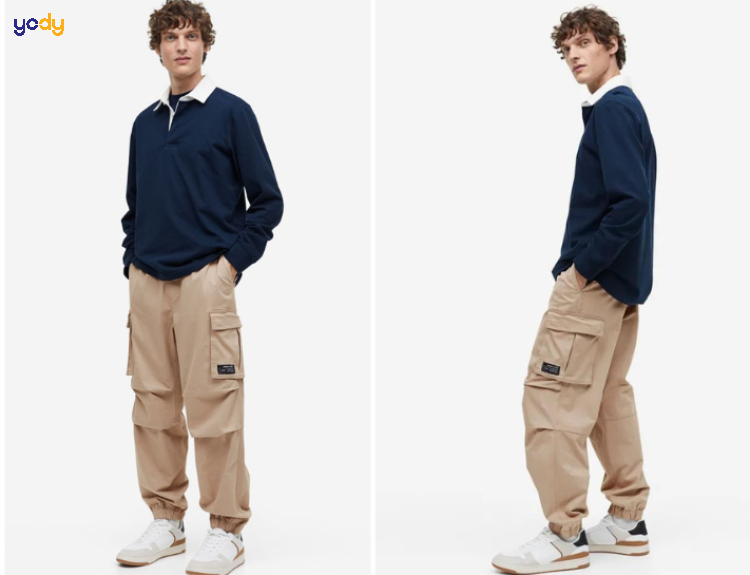 Quần túi hộp không chỉ dành cho phong cách bụi bặm mà còn có thể phối theo hướng lịch sự, trưởng thành khi kết hợp với áo polo. Kiểu phối này đặc biệt phù hợp với những buổi gặp mặt bạn bè, hẹn hò hoặc đi chơi cuối tuần. Áo polo có cổ giúp tổng thể set đồ trở nên gọn gàng hơn, trong khi quần túi hộp vẫn giữ được chất casual và năng động. Chọn thêm giày sneaker da hoặc giày lười để tăng thêm phần lịch thiệp mà vẫn trẻ trung.