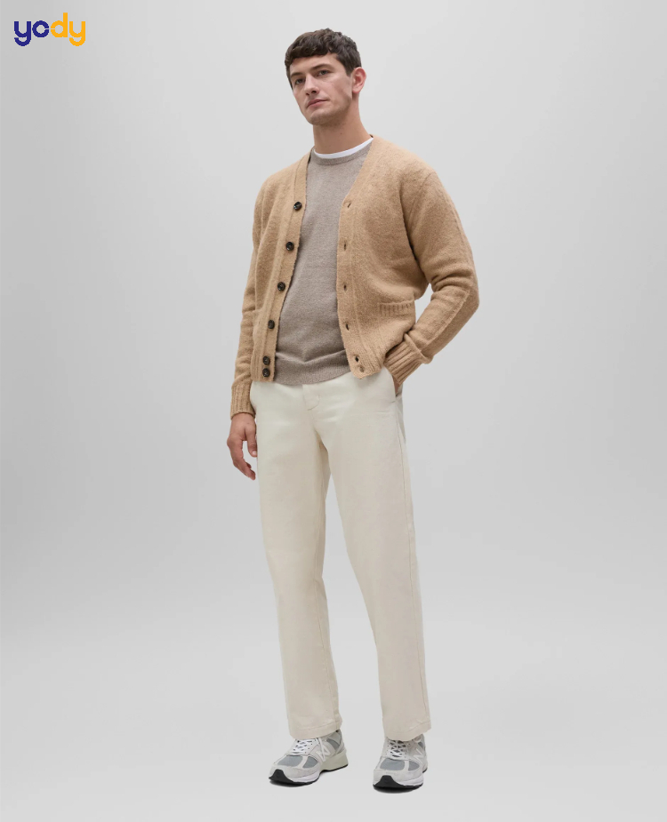 Mùa lạnh là lúc bạn có thể thỏa sức sáng tạo các lớp trang phục với quần âu slimfit. Phối cùng áo sơ mi bên trong, khoác thêm áo len mỏng hoặc cardigan sẽ tạo cảm giác ấm áp, tinh tế và thời thượng. Những tông màu như xanh navy, rêu, be hoặc nâu cà phê không chỉ hợp thời tiết mà còn rất "ra dáng" quý ông công sở. Ngoài ra, đừng quên kết hợp khăn choàng mỏng và giày da cổ thấp nếu bạn cần bước ra ngoài vào buổi tối.