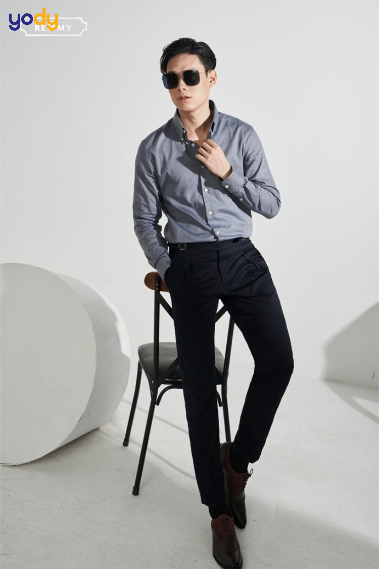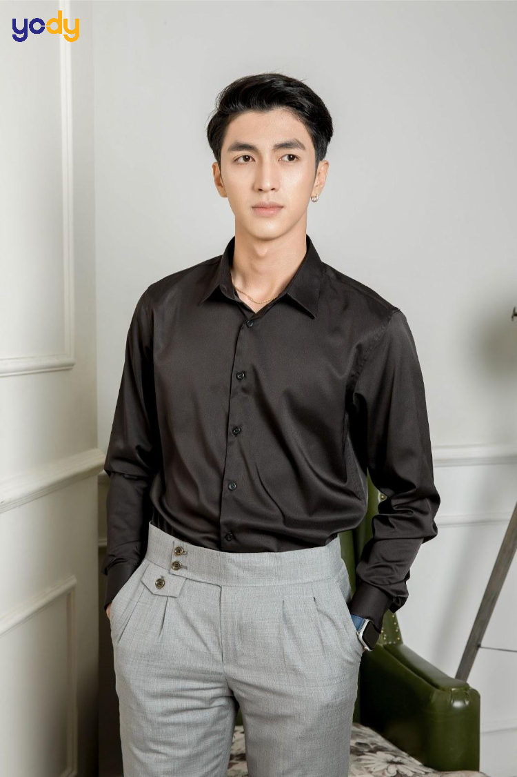 Sơ mi đen luôn gợi lên sự nam tính, bí ẩn và thu hút. Khi kết hợp với quần âu màu ghi, tổng thể trở nên sang trọng và hiện đại hơn hẳn. Phong cách này rất phù hợp cho những buổi gặp gỡ quan trọng vào buổi tối như tiệc công ty, hẹn hò hay sự kiện nhỏ. Hãy chú ý chọn sơ mi đen có chất vải tốt, không quá mỏng, để tránh mất điểm vì trông kém sang. Một chiếc dây chuyền mảnh, đồng hồ tối màu và giày derby sẽ giúp bạn trông bảnh bao hơn gấp bội.