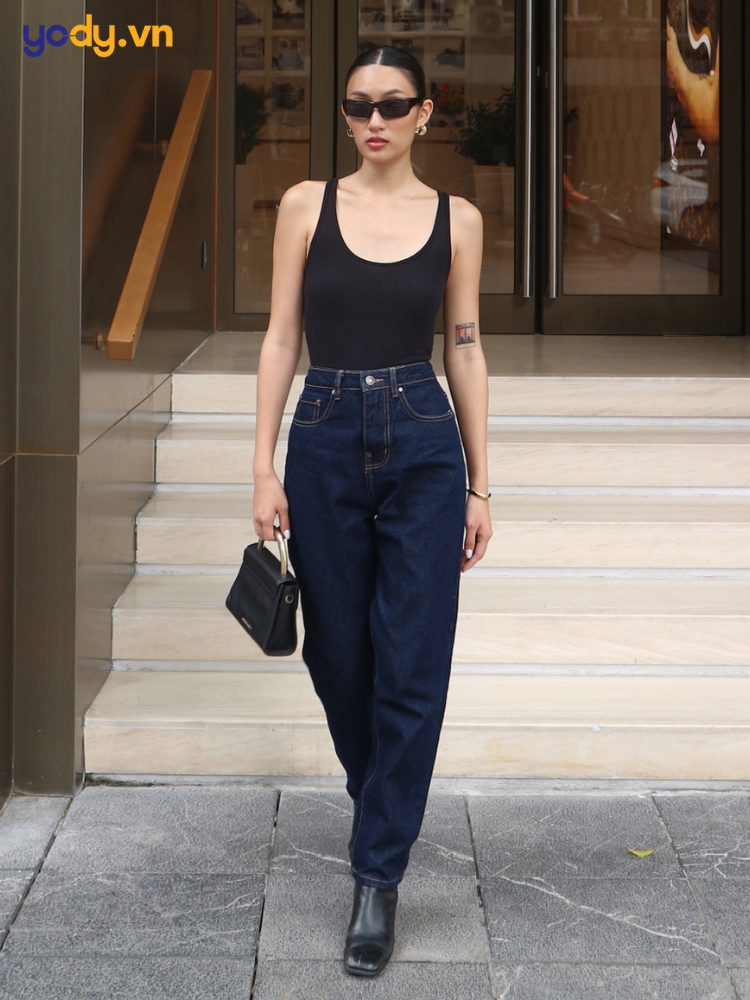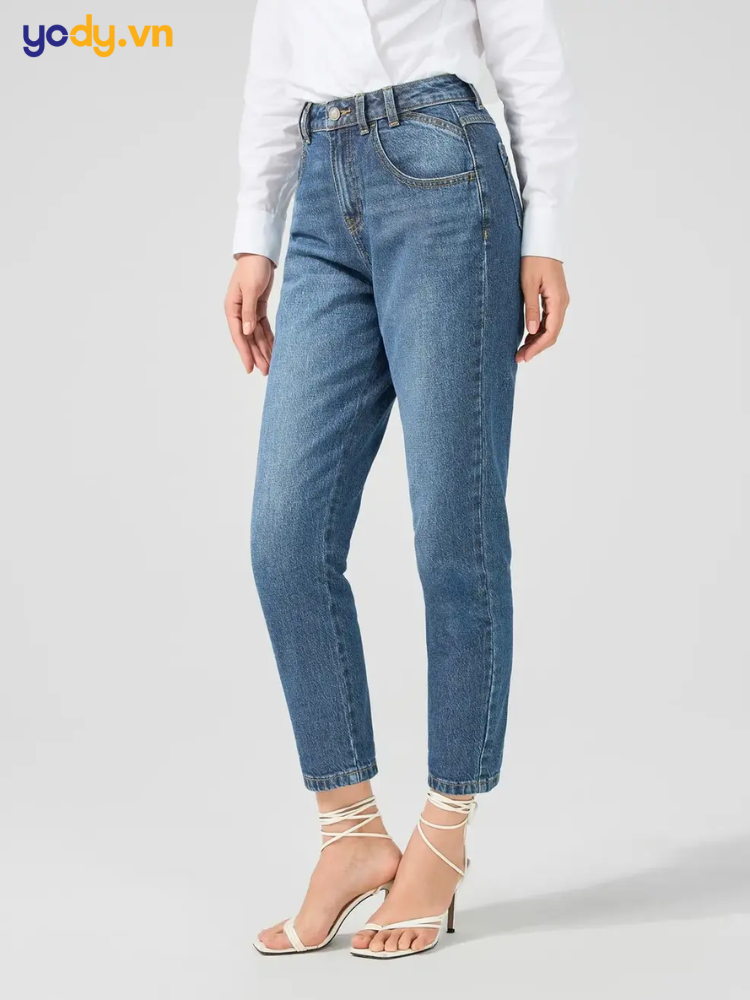 Mom jeans: Mang đậm tinh thần retro thập niên 90 với cạp siêu cao, hông rộng và túi sau to, dài. Kiểu quần này giúp tôn vòng eo rõ rệt nhưng lại có phom dáng cổ điển, khác hẳn vẻ “cool” hiện đại của boyfriend jeans.