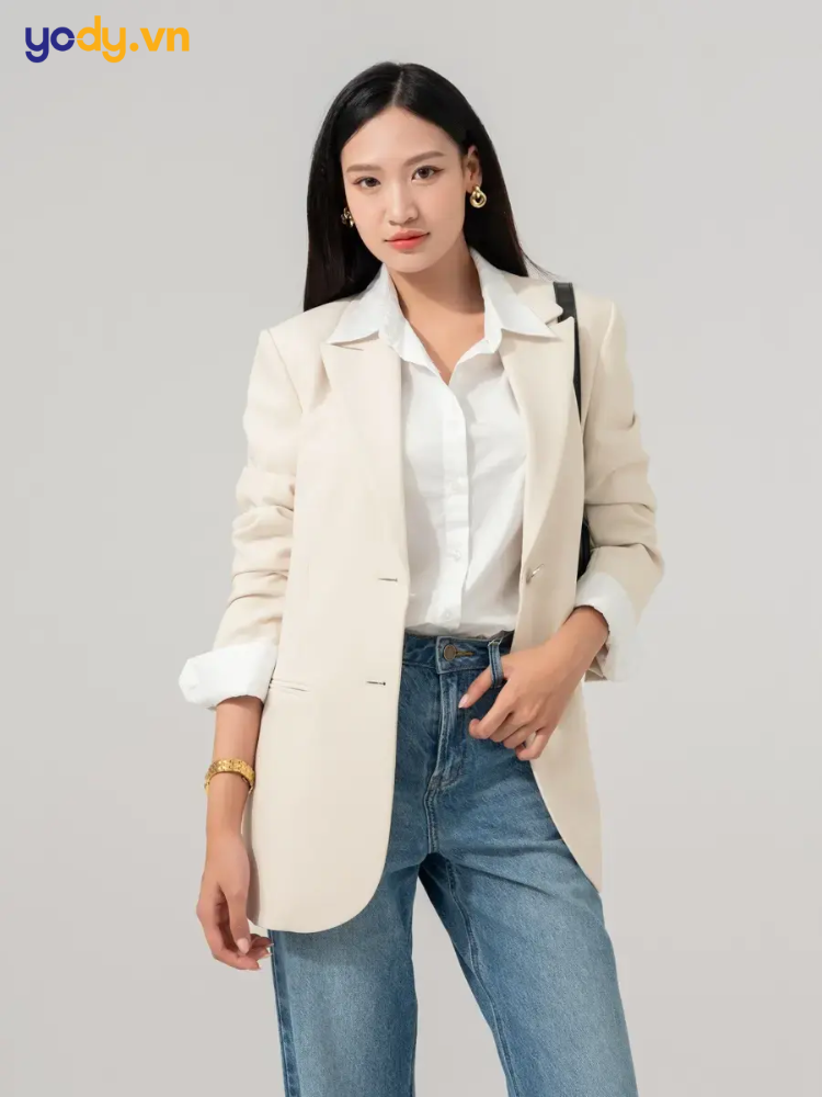 Sự kết hợp hoàn hảo cho phong cách thanh lịch hiện đại. Quần jean lưng cao dáng đứng hoặc ống rộng mix cùng blazer giúp tổng thể vừa chuyên nghiệp, vừa thời trang, không hề cứng nhắc như đồ công sở truyền thống.
