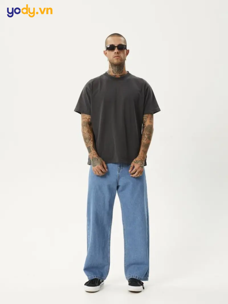 Các mẫu quần jean ống rộng tại YODY thường có form đứng, không quá thụng, giúp tôn dáng và phù hợp với đa số thể trạng nam giới Việt Nam. Đây là điểm cộng lớn so với nhiều local brand chạy theo form oversize quá đà.