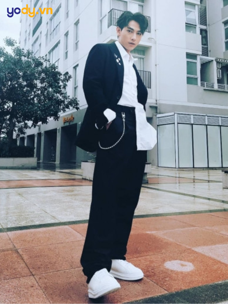 Nam chiều cao khiêm tốn: Ưu tiên hack dáng thông minh: Chọn quần cạp cao để kéo dài chân, phối cùng giày đế dày như sneaker chunky hoặc boots. Ngoài ra, set đồ cùng tone màu (áo – quần gần giống nhau) sẽ tạo hiệu ứng liền mạch, giúp bạn trông cao ráo hơn đáng kể.